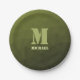Army green olive geometric mesh pattern Monogram Paper Plates