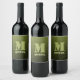 Army green olive geometric mesh pattern Monogram Wine Label