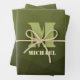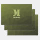 Army green olive geometric mesh pattern Monogram Wrapping Paper Sheets