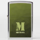 Army green olive geometric mesh pattern Monogram Zippo Lighter