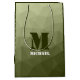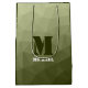 Army light green geometric mesh pattern Monogram Medium Gift Bag