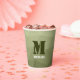 Army light green geometric mesh pattern Monogram Paper Cups