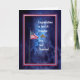 Army promotion congratulations card to an E-4. The design is blue with stars and clouds, and has an American flag. The words on the inside can be changed.