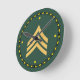 This Army clock is decorated with the Army colors green and gold, and Sergeant insignia.
