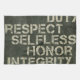 Ok so it says "Duty, Respect, Selfless, Honor, Integrity". This is a kitchen towel but hey lets be creative!! It can be a towel for anywhere you choose. Great for any military family.