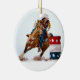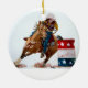 Nice size and weight ceramic ornament, unique design. Will make a nice keepsake for my barrel racer niece. Image quality is good, design is creative and pretty.