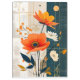 Painted poppies in orange combine with white flowers and orange berries on a mixed media background in dark blue-gray and almond-tan. Very beautiful, modern and abstract design.