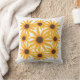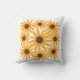 Painting of a yellow sunflower is repeated in various sizes and positions on the front of this pillow, and is shown as a single flower on the reverse side. The background color of white can be customized.