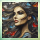 A portrait of a beautiful woman exuding arrogance in an abstract style. The stained glass technique employs artistic golden lines, blending red, orange, blue, and charcoal colors. Her hair cascades like waves in the ocean, adding a touch of vibrant elegance to this captivating portrayal of confidence.