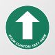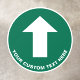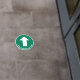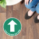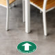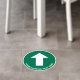 Simple green circular directional floor decal sign to guide your customers or visitors featuring a white arrow and your text in clear, easy to read white typography.