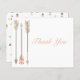 This baby shower card is designed with a gray and pink font. Infused into the design is an elegant arrow.