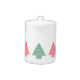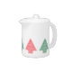 Cute teapot with red and green scribbleprint Christmas trees is perfect for the holidays!