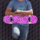 A skateboard with a hand drawn arrows design.