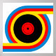 Art Bauhaus with multi-color circular patterns, red, blue, yellow; black