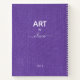 Sketchbook features the words "ART by" in a modern white font and then your custom name in a white handwritten script over a printed purple linen texture photo background. Customizable "Vol. 1" for volume one is printed near the bottom. Personalize it with your custom text in the sidebar. Other inside paper styles and notebook options available in the sidebar.