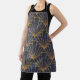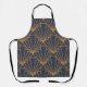 This apron has art deco design of diamonds and triangles in gold on a field of blue.