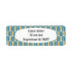 These return address labels have an art deco design of arches and upside-down Ys repeating across the design in turquoise and yellow on a field of white. Want different colors? Message me.