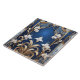 Art Deco Art Nouveau White Orchid Flowers on Blue Ceramic Tile