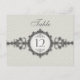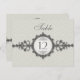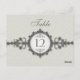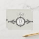 A table card that takes its influence from the Art Deco era. An ornate band, looking like a Victorian wristwatch, features a medallion holding the table number or letter with the customizable word "table" above it. The taupe background prints a subtle pattern as a watermark. Double-sided design for convenience from any angle. Available in alternate colors with matching products.