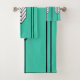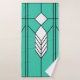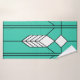 This towel set has an art deco stained-glass window design of diamonds and lines in white, black, and turquoise.