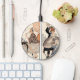 One woman is putting on her lipstick and another is having her hair styled in this French art deco print.