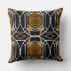 Striking black and white Art Deco pattern with accents of gold and soft pink make this pillow a beautiful addition to your home decor. Gold palm leaves intertwine with circles of white, gray, and pink.