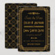 These save the dates feature a black and gold color palette, a geometric frame, geometric patterns, and other stylistic details all inspired by Art Deco and the roaring twenties. You can customize the sample text fields to your liking.