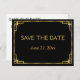 Gold and black wedding Save the Date postcards in Great Gatsby Art Deco style with customizable text