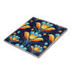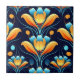 Art Deco blue orange flowers Ceramic Tile