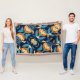 Art Deco blue orange flowers Throw Blanket