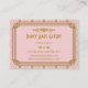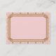These business cards feature a pink and gold color palette, a geometric frame, geometric patterns, and other stylistic details all inspired by Art Deco and the roaring twenties. You can type in your name, job title, phone numbers, email address, and website in the sample text fields.