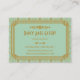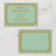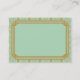 These business cards feature a mint green and glittery gold color palette, a geometric frame, geometric patterns, and other stylistic details all inspired by Art Deco and the roaring twenties. You can type in your name, job title, phone numbers, email address, and website in the sample text fields.