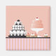 Art deco cakes on striped tablecloth against a pink background. Cute image of delicious decoratively iced cakes you would just love to have in your kitchen (and hand...and mouth) YUM