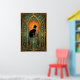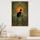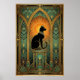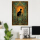 Set within a grand teal cathedral frame, a regal black cat sits beneath a glowing orange celestial orb. The soft gradient and symmetrical arches evoke a sense of peaceful grandeur, making it a calming yet opulent centerpiece for any sophisticated space.