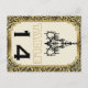 Art Deco chandelier black, gold table number postcard featuring a black chandelier, a border in Art Deco style and black and golden floral damask on beige/ecru. This elegant design is a modern approach to a vintage/retro style that resembles that of the Roaring 20’s and The Great Gatsby. It is part of a wedding set and is completely customizable.