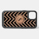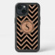 Chic Art Deco inspired Otterbox brand iPhone 6 case, with graphics of a black and rose gold chevron pattern and a decorative rose gold disc, in the center of the case. the black one letter monogram to suit your needs. Lovely that makes a great idea.