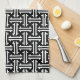 Kitchen towel in an Art Deco Chinese Fretwork pattern tile in classic black and white