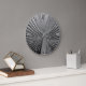 Art Deco themed pattern based on a stylized palm leaf, rendered in a 3-d effect in silver chrome color