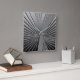 Art Deco themed pattern based on a stylized palm leaf, rendered in a 3-d effect in silver chrome color