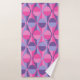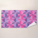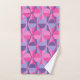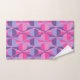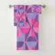 This towel set has an art deco design of two-toned pink and purple circles inside two-toned pink and purple triangles.