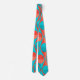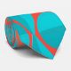 This tie has an art deco design of two-toned orange and teal circles inside two-toned orange and teal triangles.