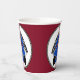 What Fun! Sure to delight both children & car racing fans, the design adorning these paper cups is an original digital painting by Leslie Sigal Javorek of a head-on view of a bright blue 1920’s Bugatti-inspired car and driver, w/ checkerboard flags & tire marks trailing behind.
