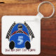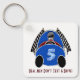 Art Deco Comic Style Blue Race Car (Personalized) Keychain