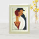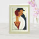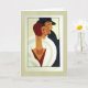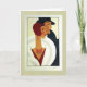 A woman in a red cloche hat, red dress, white fur stole, and beautiful ornate jewelry, poses with her handsome gentleman companion dressed in Homburg hat and overcoat, make an elegant couple in this signed Art Deco illustration of the 1920s. A perfect gift and memorabilia for the lover of vintage art! (Artist unknown).