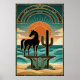 Art Deco Cubist Woman Celestial Sunburst Gold Teal Poster