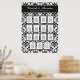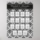 Elegant formal black and white damask wedding or annivesary dinner party seating chart. Easily customize the layout with the names of your guests. You can seat beween 6 and 9 guests at each of table, meaning that this chart can help you to seat between 90 and 135 guests. Why not frame one as a souvenir?