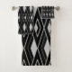 This towel set has an art deco design of gray diamond shapes on a field of black.