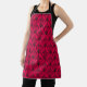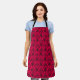 This apron has an art deco design of diamonds with vertical and diagonal lines and circles on a field of hot pink.