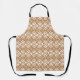This apron has an art deco design of overlapping diamonds in brown and tan on a field of white.