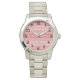 This women's watch has an art deco design of overlapping diamonds in ombre effect of red on a field of white.
